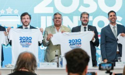 “El Mundial Centenario 2030 comienza donde todo se inició”, afirmó el presidente de la entidad sudamericana, Alejandro Domínguez. Los dirigentes durante la presentación a la candidatura...