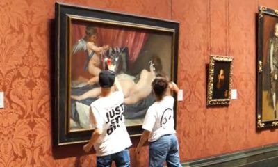 Dos activistas de Just Stop Oil rompieron a martillazos el vidrio que protege a la obra, dieron su mensaje y luego fueron detenidos por la Policía....