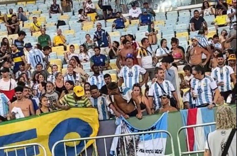 A pesar de este incidente, los argentinos siguieron con el repertorio de canticos y los brasileños respondieron con abucheos en la previa de lo que será el partido número 110 en el historial entre ambos.