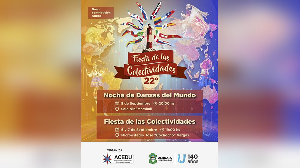 La Municipalidad de Ushuaia, a través de la Secretaría de Cultura y Educación, llevará adelante la 22ª Fiesta de las Colectividades junto a la Asociación de Colectividades Extranjeras de Ushuaia (ACEDU); la cual contará con un bono contribución de $1.000 y es parte de las actividades por el Mes del Inmigrante.