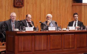En el Panel: conflictos armados internacionales: a 40 años de la Guerra de Malvinas, Marcos Pablo Moloeznik acompañado por Mario Sznajder Universidad Hebrea de Jerusalén, Israel y Antonio Gil Fons de la casa de estudios
