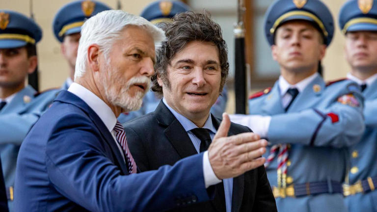 Luego, el mandatario argentino tuvo su última actividad en Praga, donde, acompañado por la secretaria general de la Presidencia, Karina Milei, fue recibido en el Castillo de la ciudad por el presidente checo Petr Pavel.